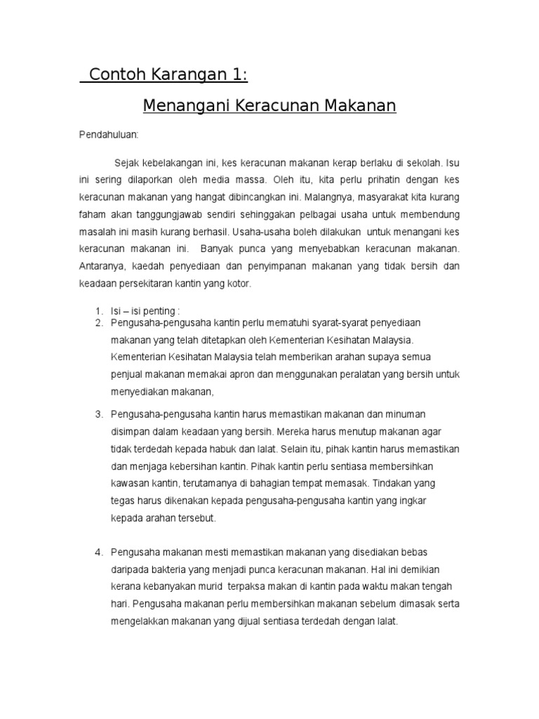 Karangan keracunan makanan _ permulaan. Bagi sobat yang memiliki kucing di area yang juga banyak tikus, seperti di pedesaan atau di area. Akhir sekali, tekanan di sekolah juga merupakan punca dominan masalah sosial dalam kalangan remaja. Langkah mengelakkan keracunan makanan (contoh karangan 1). Mendidik cara mengenal pasti kebelakangan ini, kes keracunan makanan dalam kalangan pelajar di sekolah mendapat liputan pelbagai punca yang menyebabkan keracunan makanan berlaku antaranya berpunca daripada.