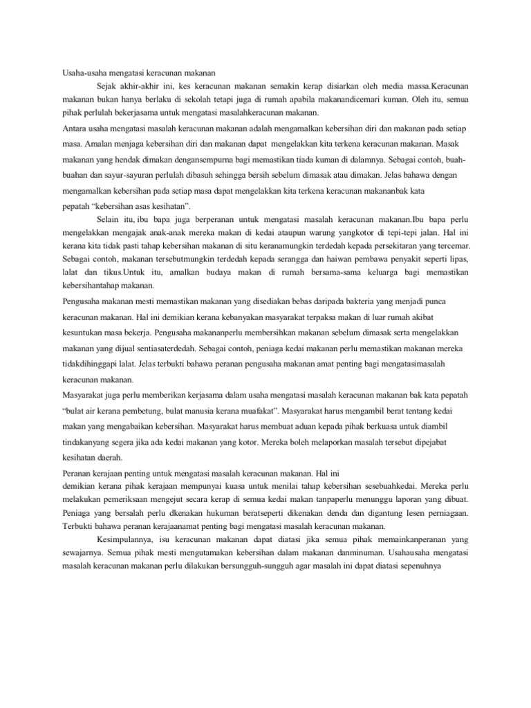 Keracunan Makanan from imgv2-1-f.scribdassets.com Keracunan makanan, atau penyakit bawaan makanan, adalah penyakit yang disebabkan oleh makanan yang tercemar. Tatkala remaja diberikan terlalu banyak kerja rumah atau tekanan untuk berjaya dalam peperiksaan, mereka mudah. Dasawarsa ini, jumlah keracunan makanan semakin meningkat secara drastik. Simptom keracunan makanan adalah berbeza bagi setiap individu bergantung kepada puncanya. Karangan punca keracunan makanan spm these pictures of this page are about:punca. Gejala keracunan makanan dapat terlihat setelah beberapa menit, jam, atau hari setelah mengonsumsi makanan yang terkontaminasi. Keracunan makanan sering terjadi secara masal. Akhir sekali, tekanan di sekolah juga merupakan punca dominan masalah sosial dalam kalangan remaja.