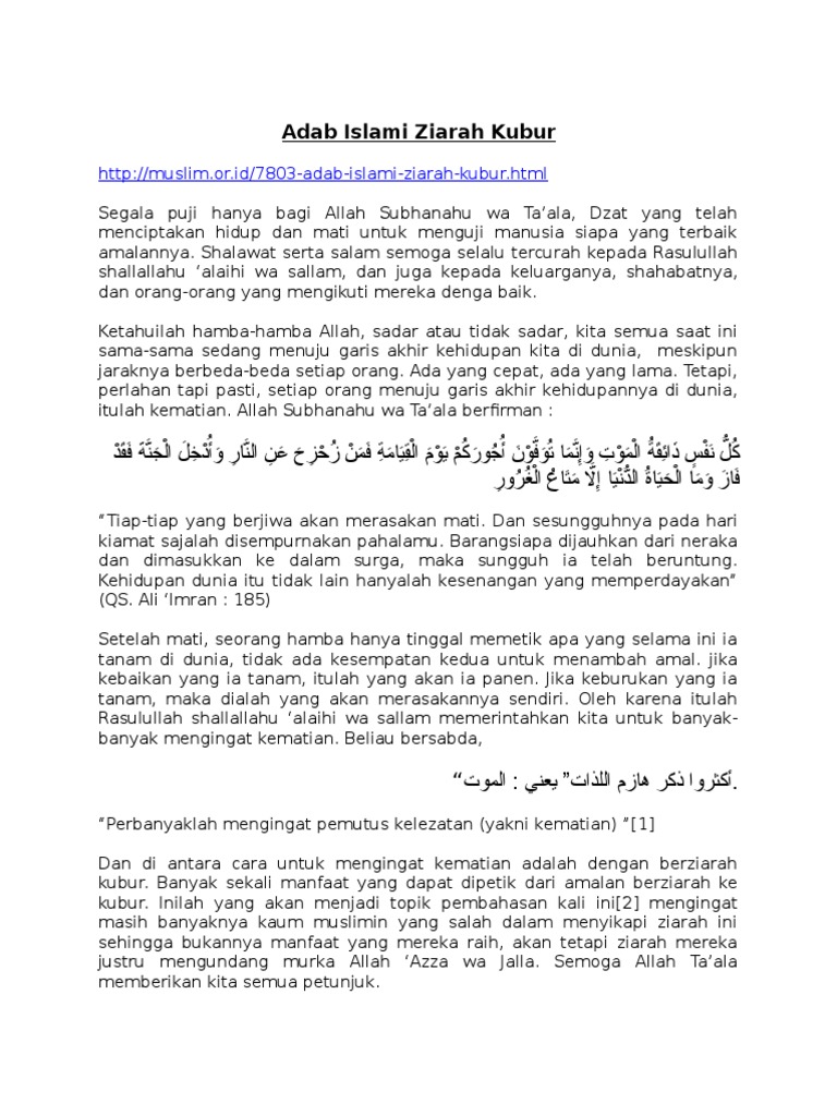 Adab Ziarah Kubur / Doa ziarah kubur beserta tata cara ziarah kubur dan adab ziarah kubur yang perlu diketahui.. Demikian tentang adab ziarah kubur sesuai syariat islam. Cara doa ziarah kubur ke makam orang tua kita. Tatacara dan adab ziarah kubur tujuan utama ziarah kubur adalah mengingat mati dan mengingat akhirat sebagaimana dinyatakan rasulullah shallallahu 'alaihi wa sallam, aku pernah melarang. Ziarah kubur adalah berkunjung ke makam atau kubur orang islam yang telah meninggal dunia. Hendaknya mengingat tujuan utama berziarah.
