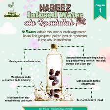 Air rendaman kurma atau biasa dikenal dengan air nabeez mungkin masih sangat asing bagi sebagian orang. Sebab, air rendaman kurma yang berusia lebih dari tiga hari telah mengalami proses fermentasi yang menjadikan rendaman kurma berubah menjadi arak. Orang barat baru sekarang faham dan baru mempopulerkan khasiat infuse water ini. Hal tersebut bahkan sempat diriwayatkan oleh imam muslim : Resep air rendaman kurma 24.