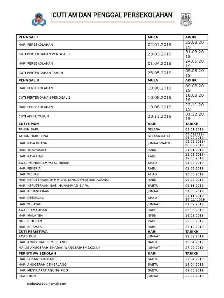 Penggal Persekolahan Dan Cuti Am 2019 / Masih terdapat kekeliruan di kalangan orang ramai berhubung tarikh cuti persekolahan dan cuti perayaan aidilfitri tahun ini.