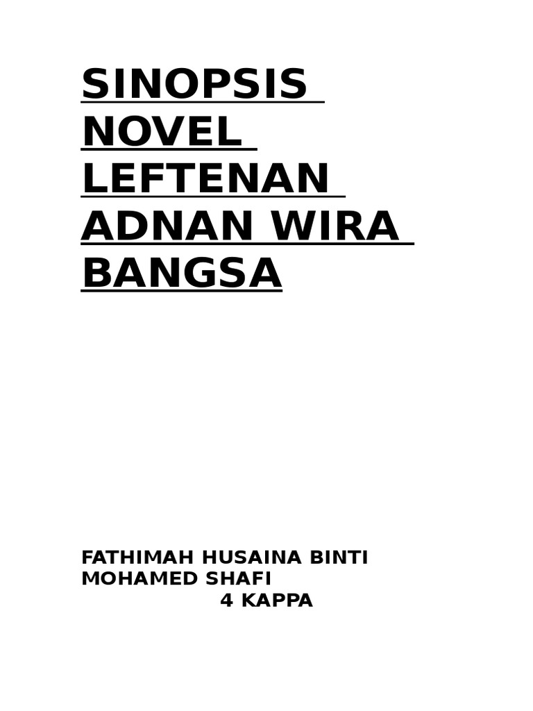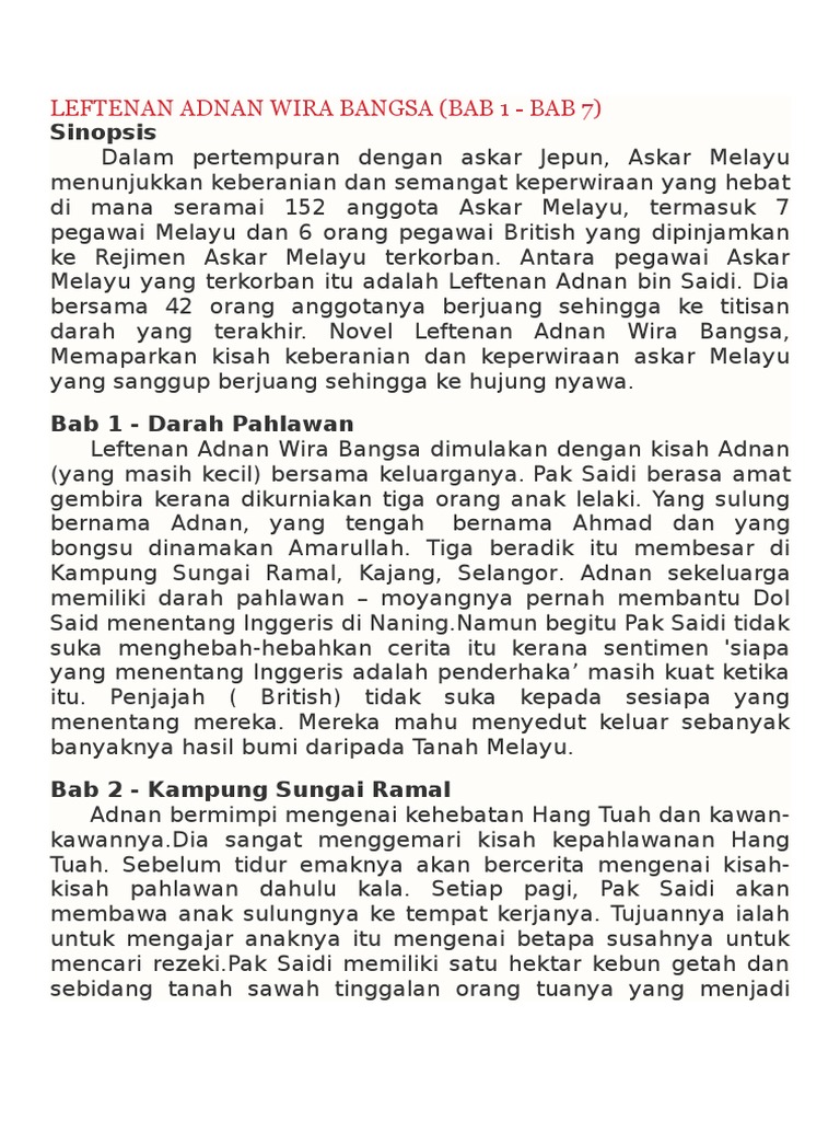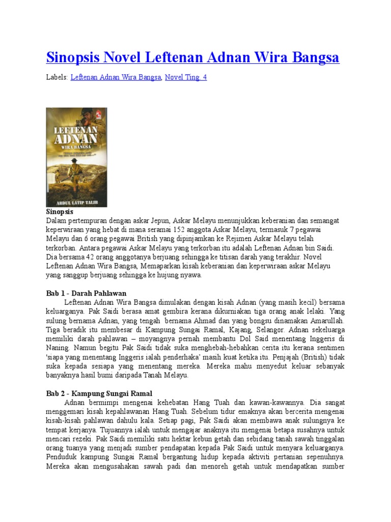Related : Novel Leftenan Adnan Wira Bangsa : Sinopsis Novel Leftenan Adnan Wira Bangsa - Laman KOMSAS / Leftenan adnan wira bangsa novel komponen sastera (komsas) dalam mata pelajaran bahasa malaysia tingkatan 4 (selangor, wilayah persekutuan labuan, putrajaya, negeri sembilan)..